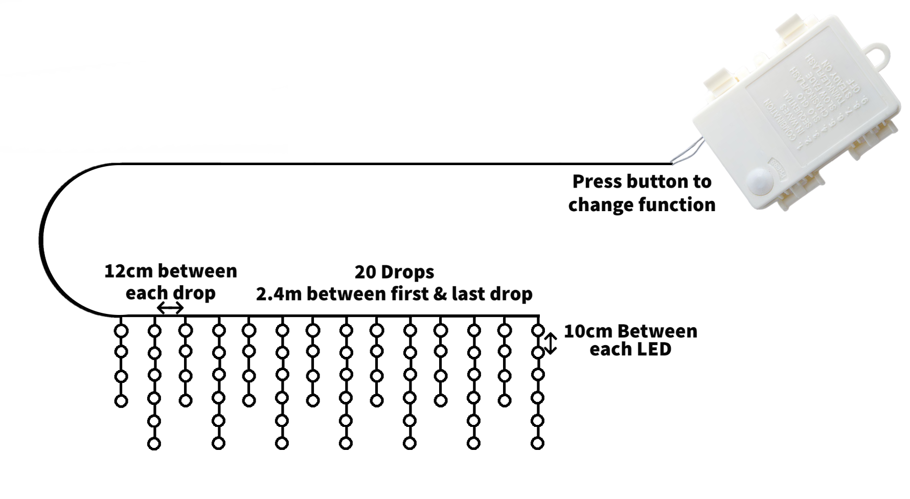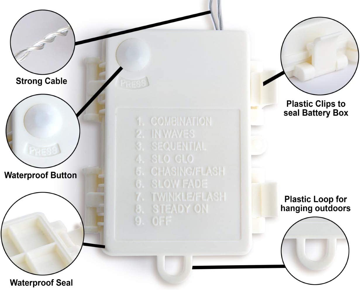 • Waterproof LED Icicle Lights and Waterproof Battery Compartment.
