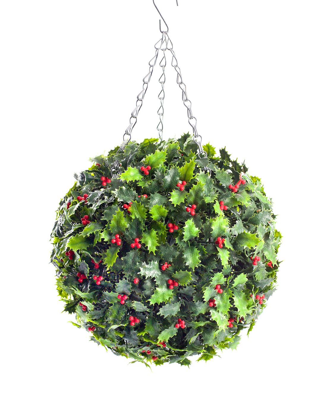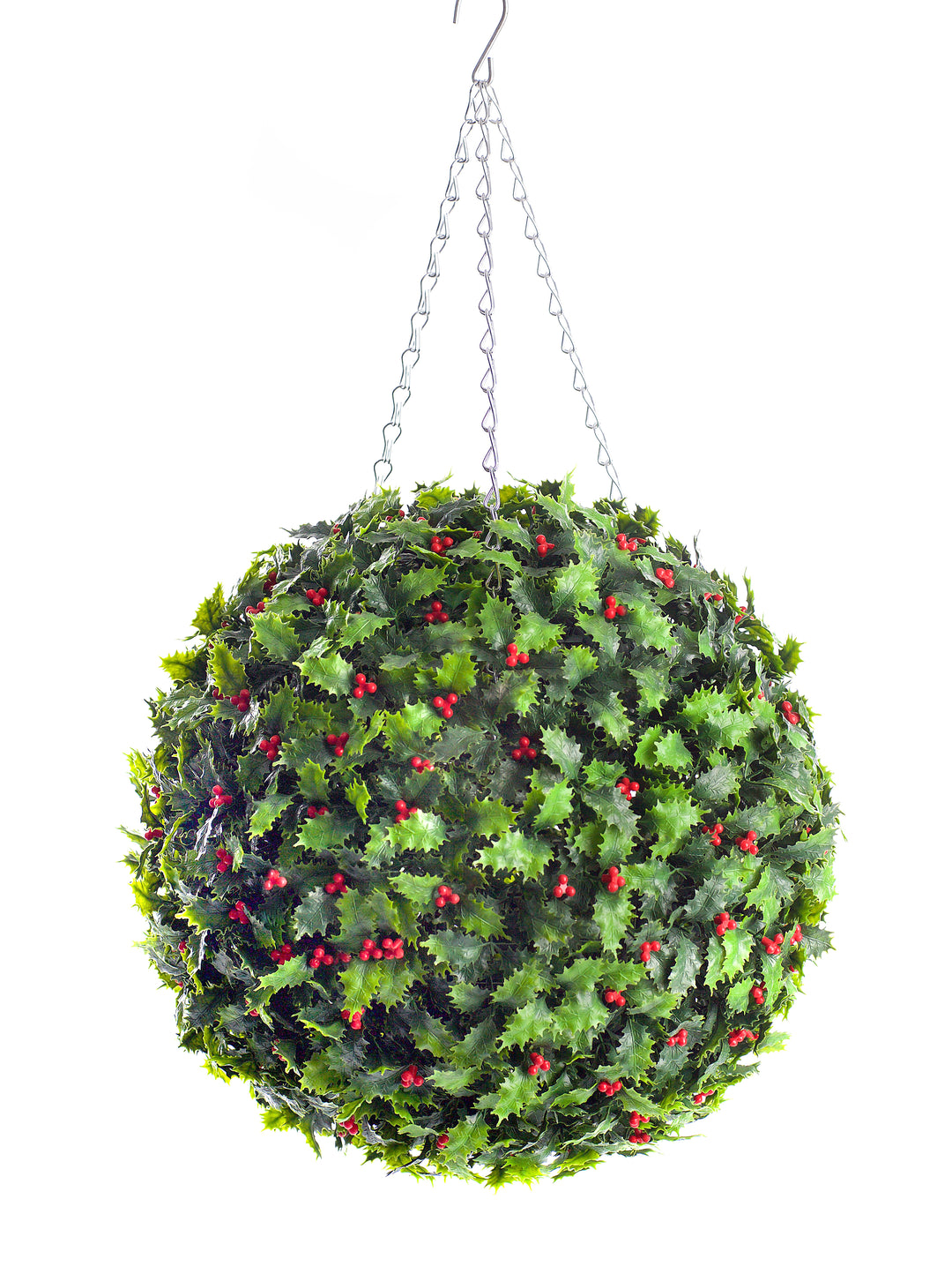Best Artificial 38cm Christmas Holly Ball with Red Berries