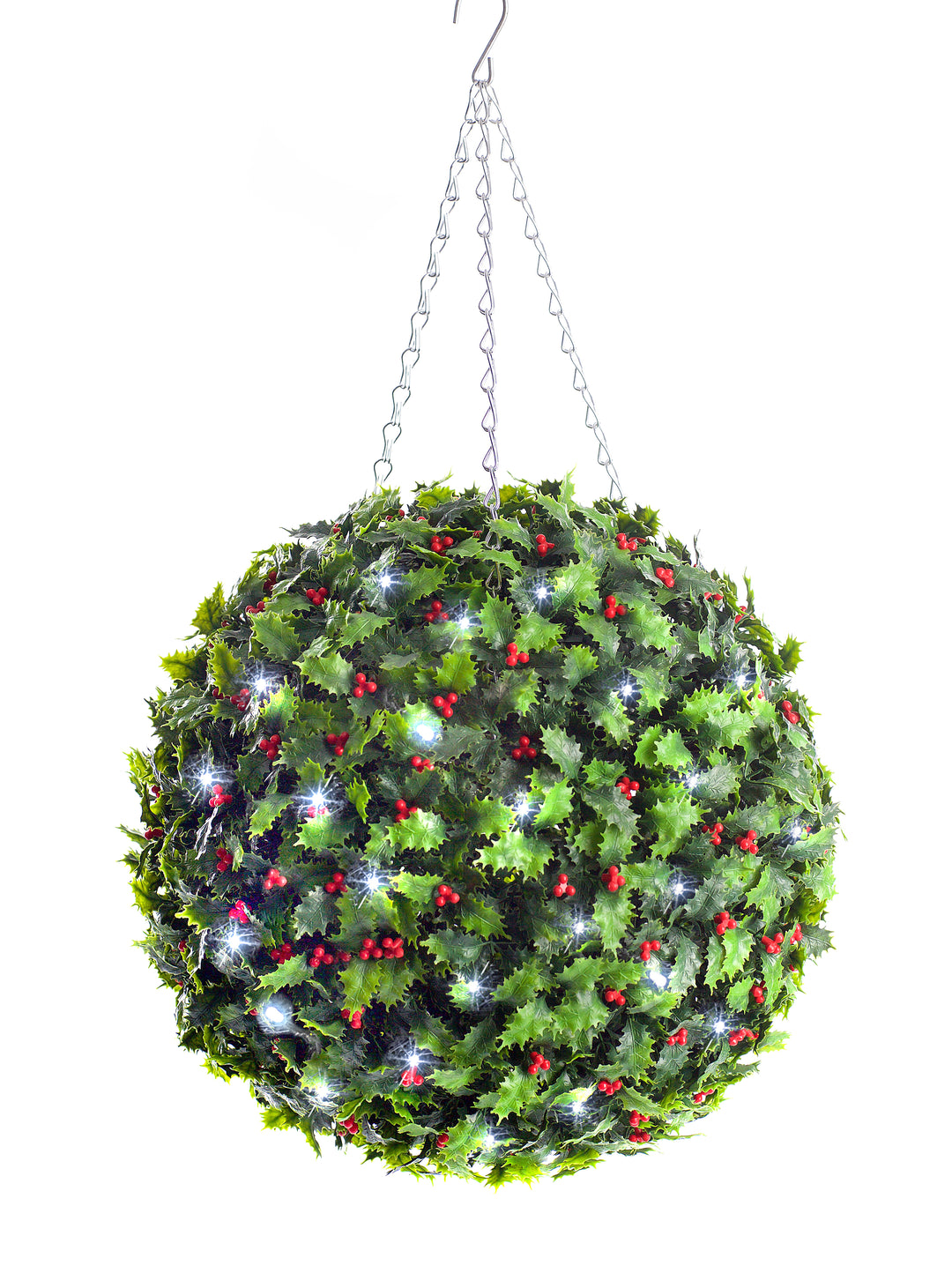 Best Artificial Pre Lit 38cm Christmas Holly Ball with Red Berries