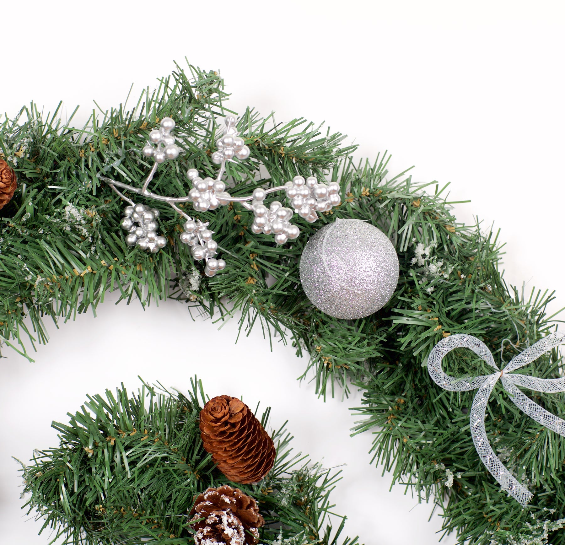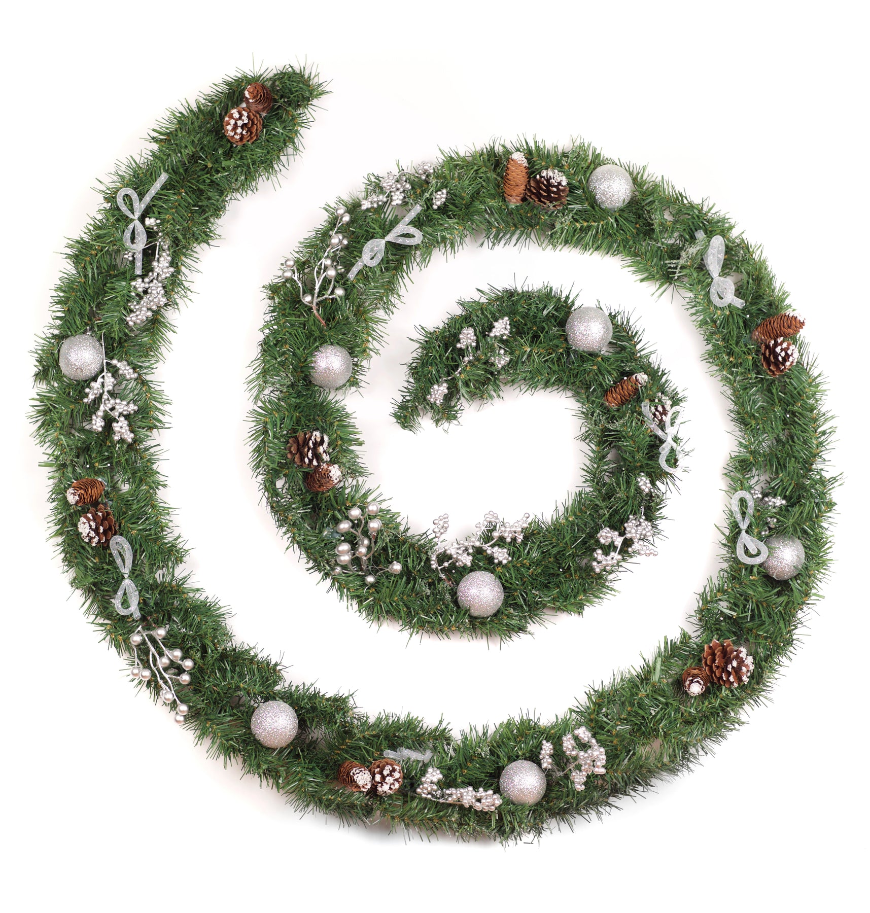 • 9ft/270cm Garland - Embrace the natural beauty of winter with this garland as it features realistic ice and snow crystals. Transform your home or business into a snowy paradise with 130 PVC tips and 28 delightful decorations. Plus, it's fire retardant for extra peace of mind.