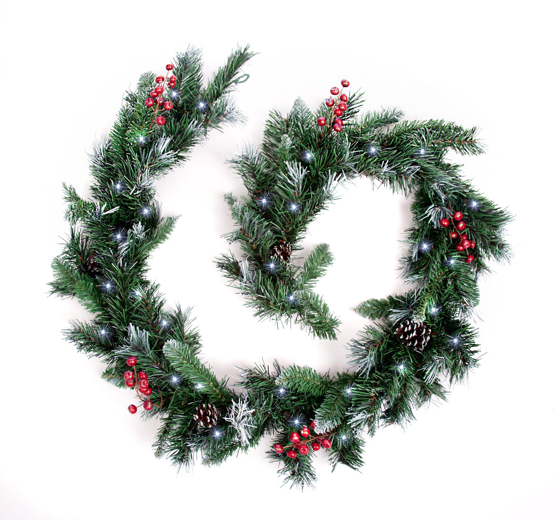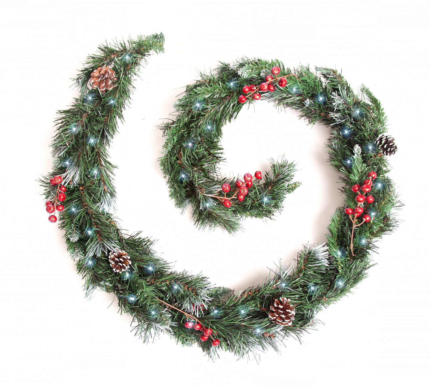 Best Artificial 6ft-9ft-12ft Deluxe Frosted Christmas Garland with Pine Cones & Winter Red Berries - Optional Lights