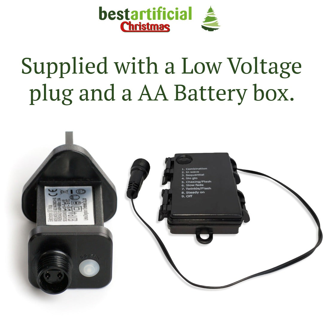 Supplied with both a Low voltage UK plug and a Battery Box which requires 3 x AA batteries (not included) the tree can be displayed anywhere without being restricted by a plug socket. Both the Plug and the Battery Box have an inbuilt timer and multifunction features.