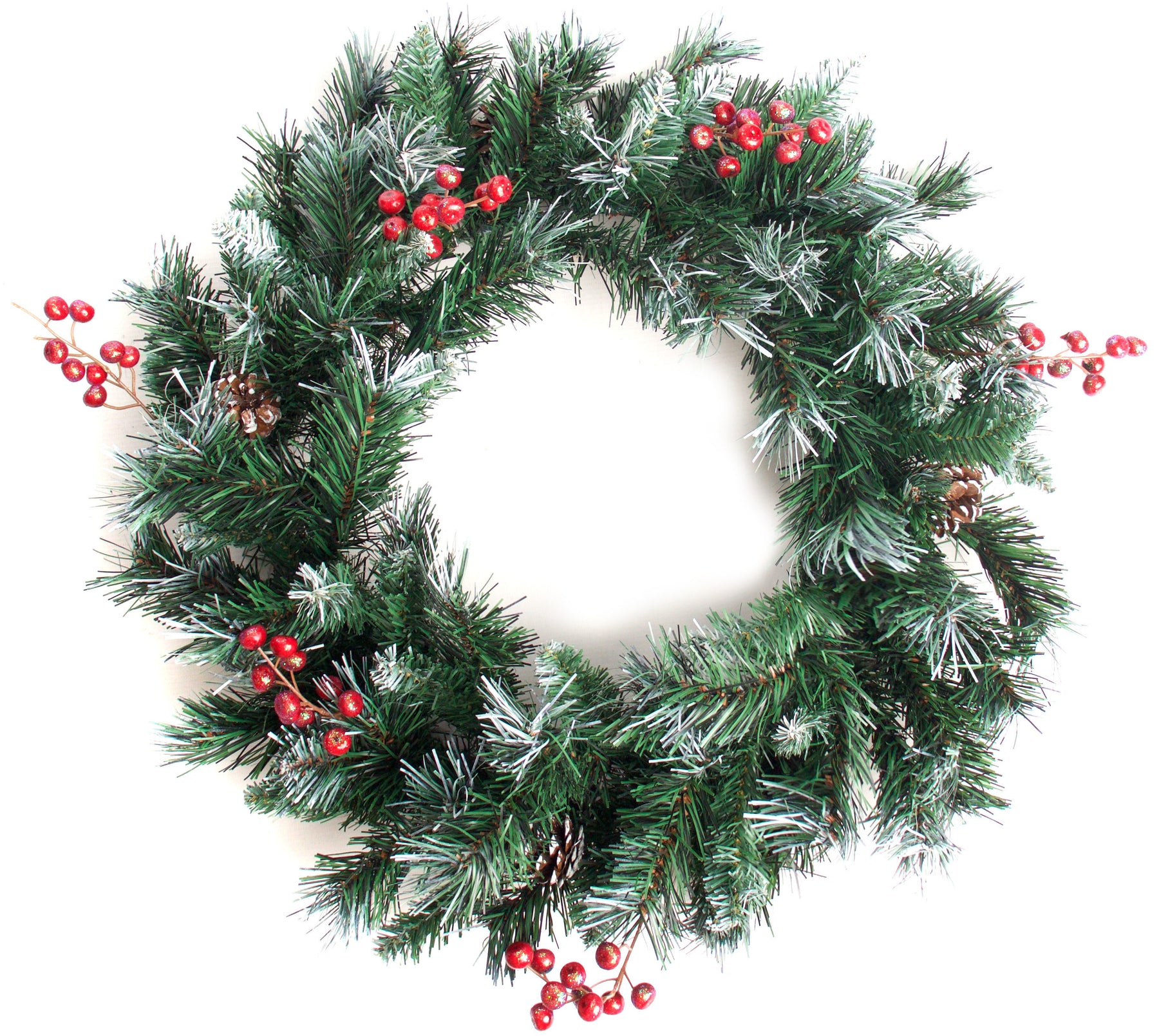 Best Artificial Deluxe Frosted Christmas Wreath with Pine Cones & Winter Red Berries