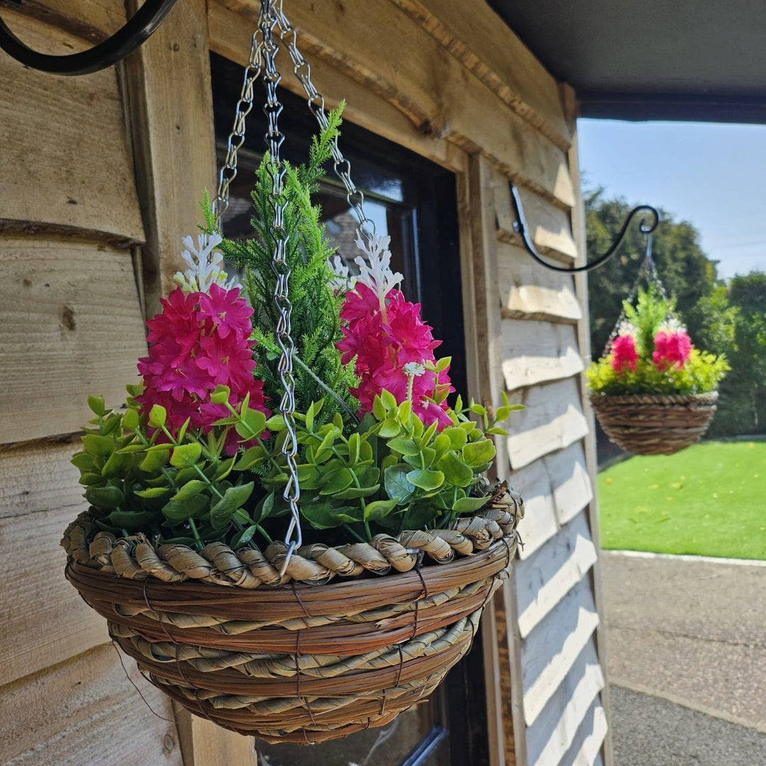 Our signature Best Artificial hanging baskets. In a range of different flowers, sprays and colours, there is guaranteed to be a basket to fit your taste.