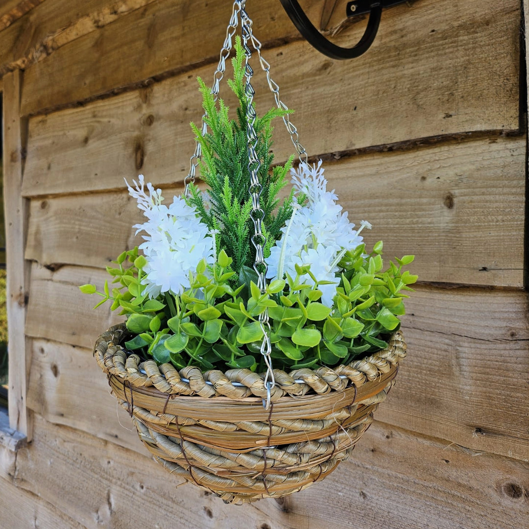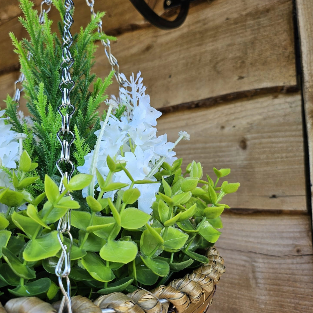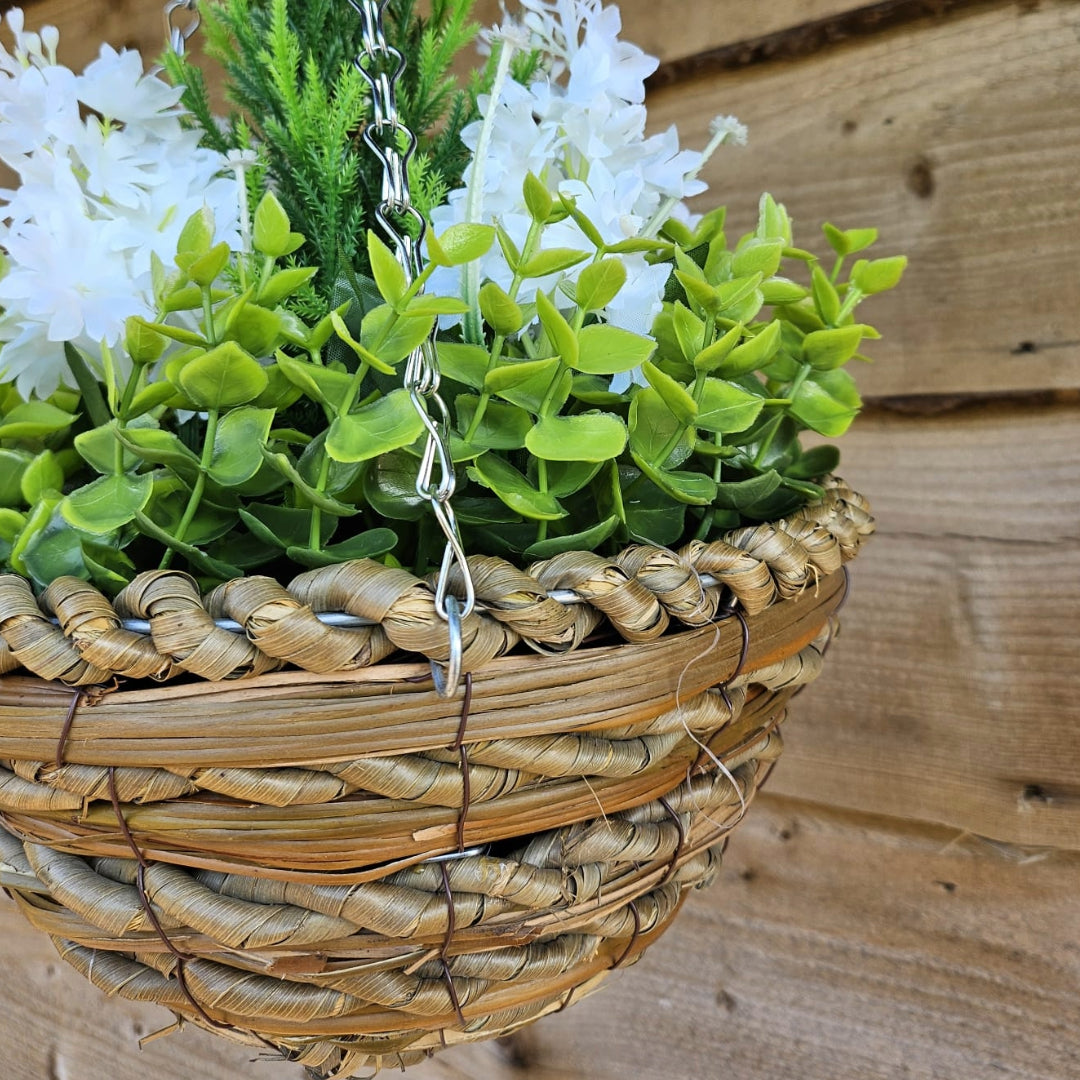 The Best Artificial 10 inch Hyacinth Woven Hanging Basket is perfect for adding a touch of natural beauty to your outdoor space. Made for durability and suitable for outdoor use, this white hanging basket will bring charm and elegance to any setting. Upgrade your outdoor decor with this high-quality, woven hanging basket.