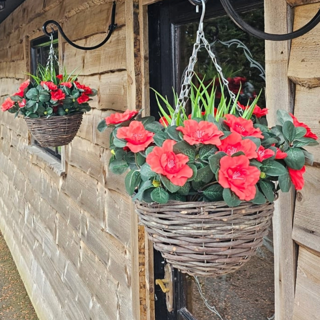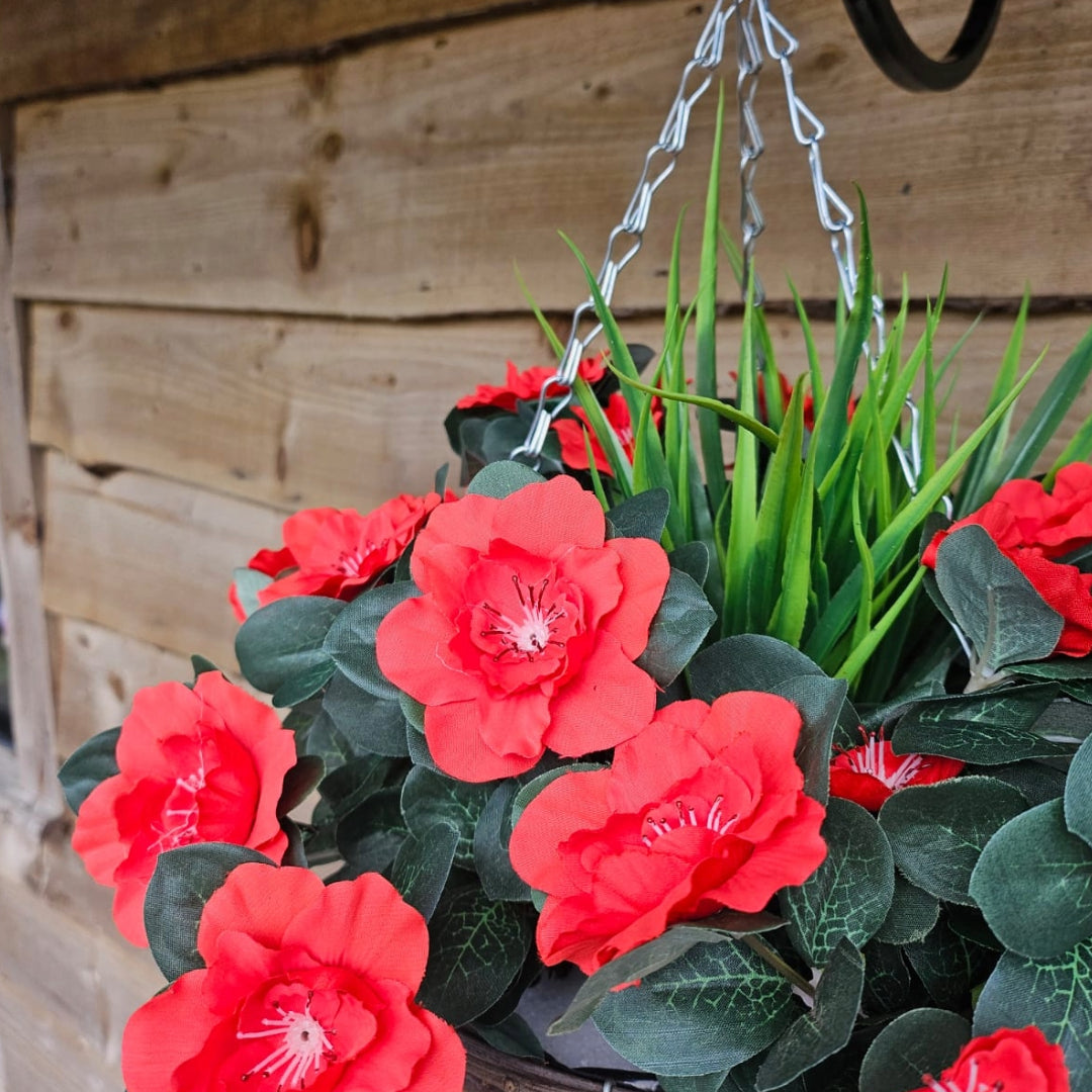 Best Artificial 28cm Azalea Flower Display in 10" Wicker Rattan Basket - Suitable for Outdoor, Indoor and Garden (Red)
