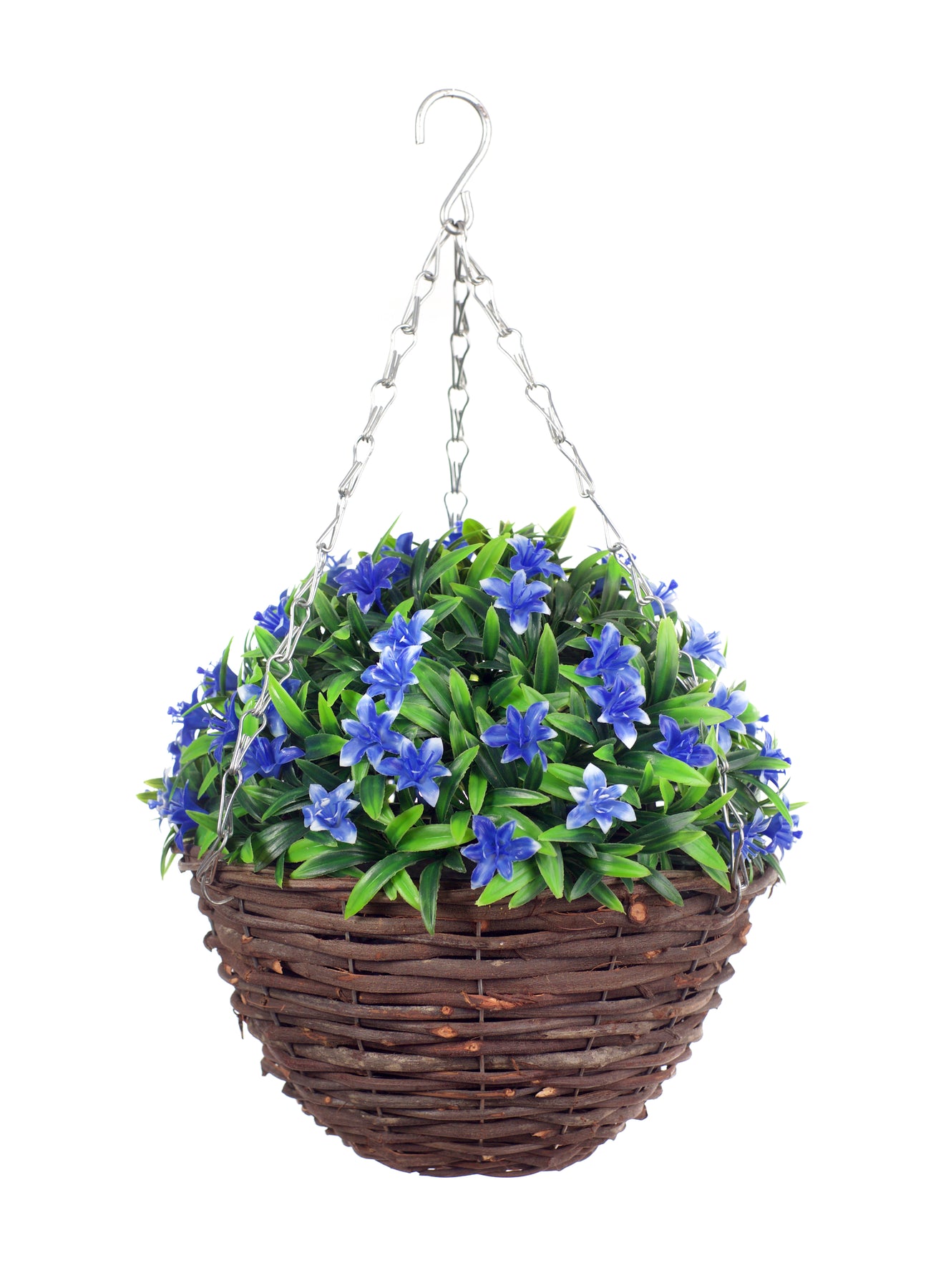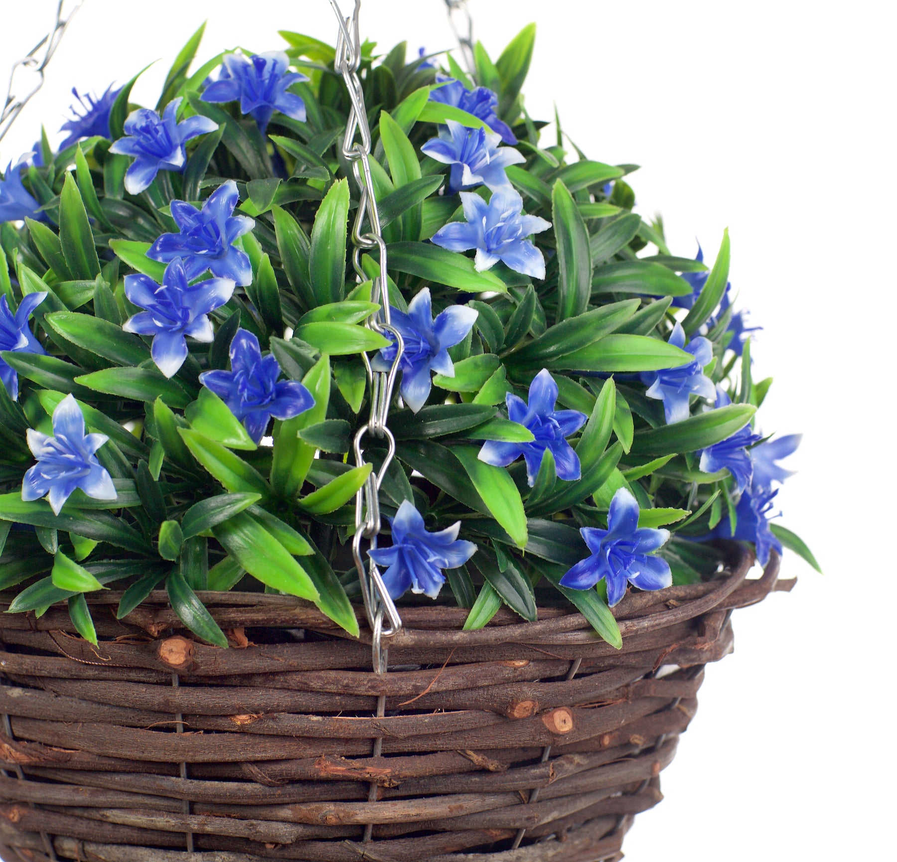 Best Artificial 28cm Lily Hanging Basket - Suitable for Outdoor Use - Weather Resistant (Blue)