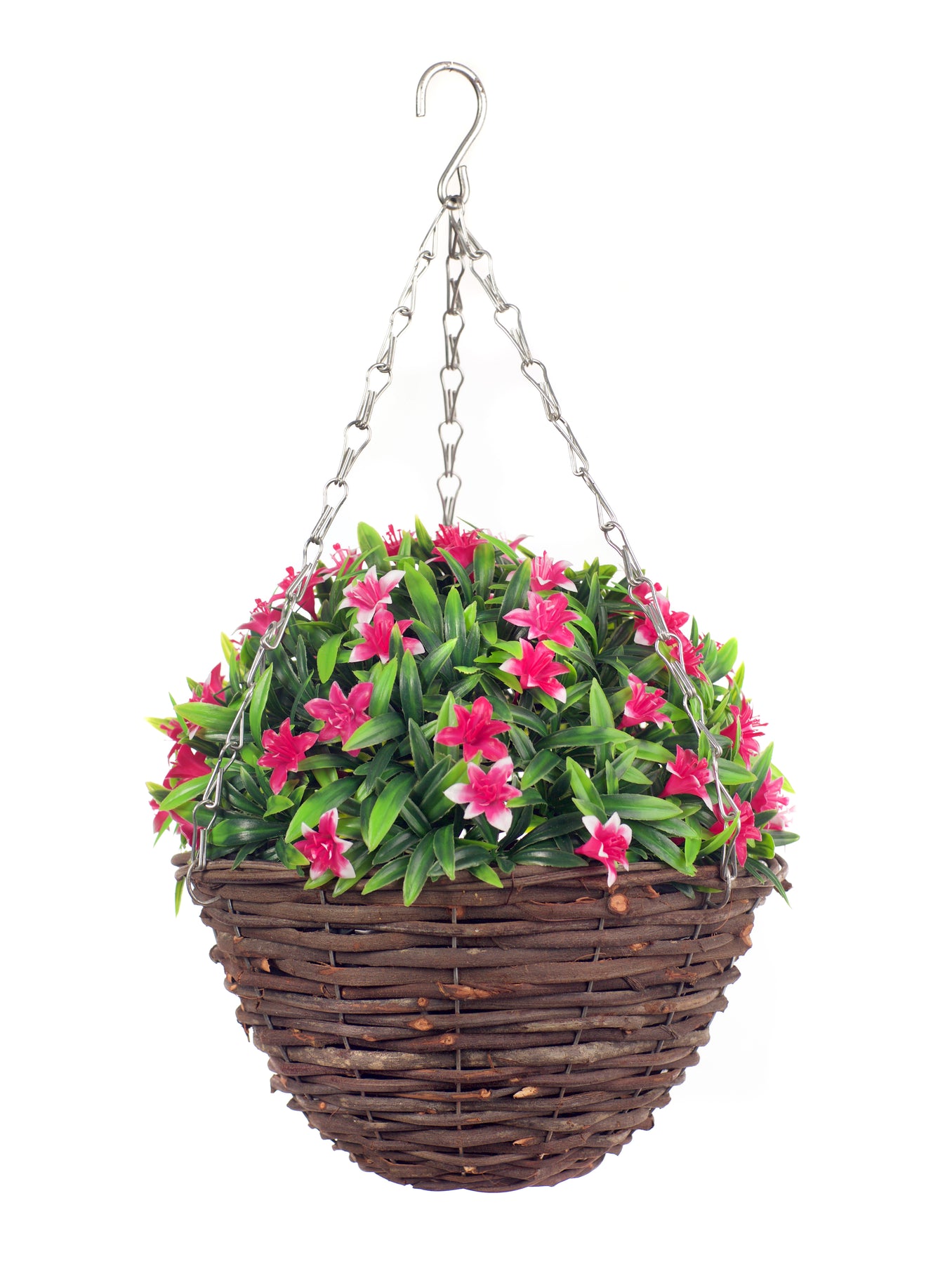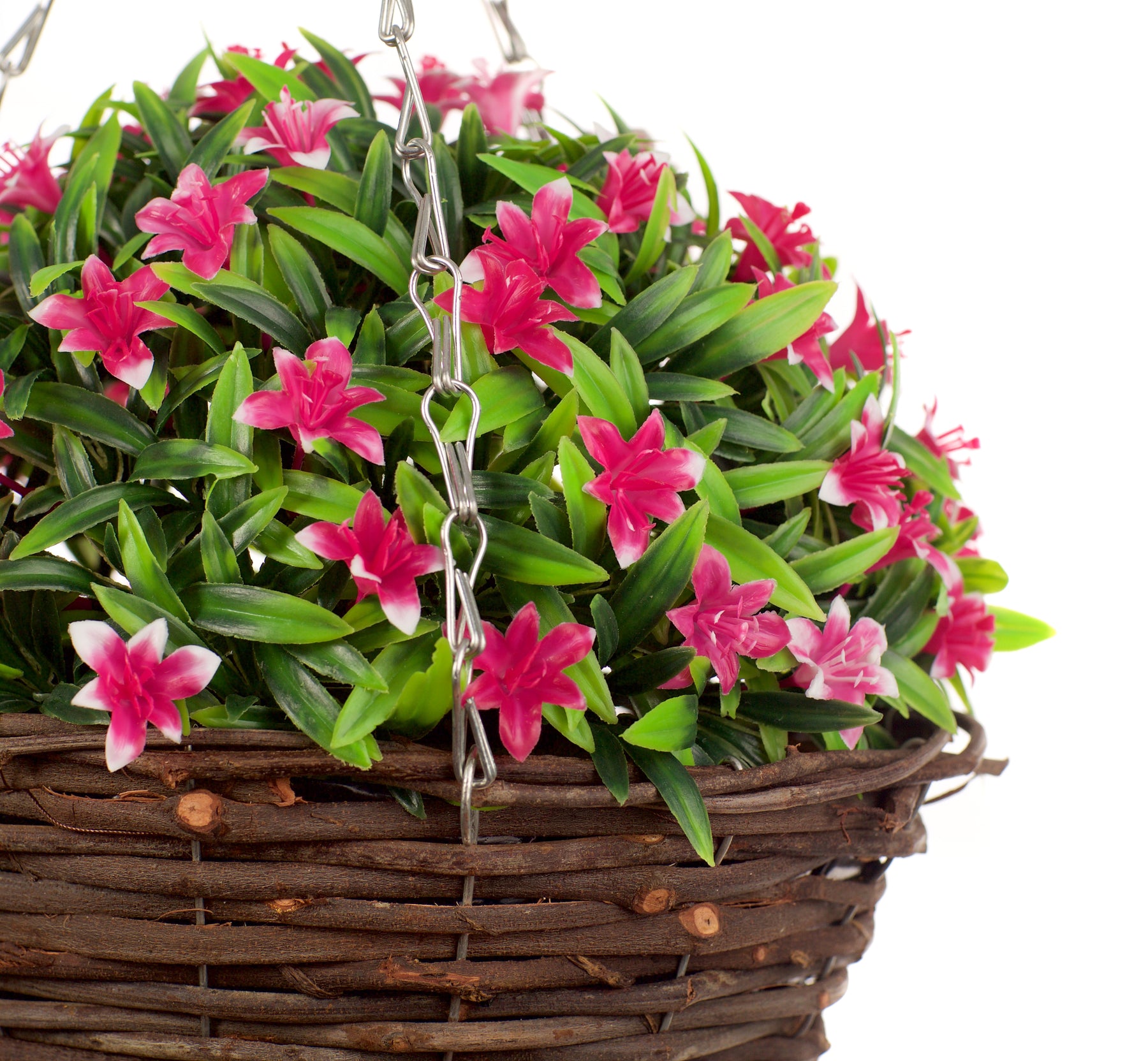 This Best Artificial 28cm Lily Hanging Basket is perfect for adding a touch of beauty to any outdoor space. The vibrant pink lilies are crafted from high-quality materials, making them weather resistant and suitable for outdoor use. Create a stunning and low-maintenance display with this hanging basket.