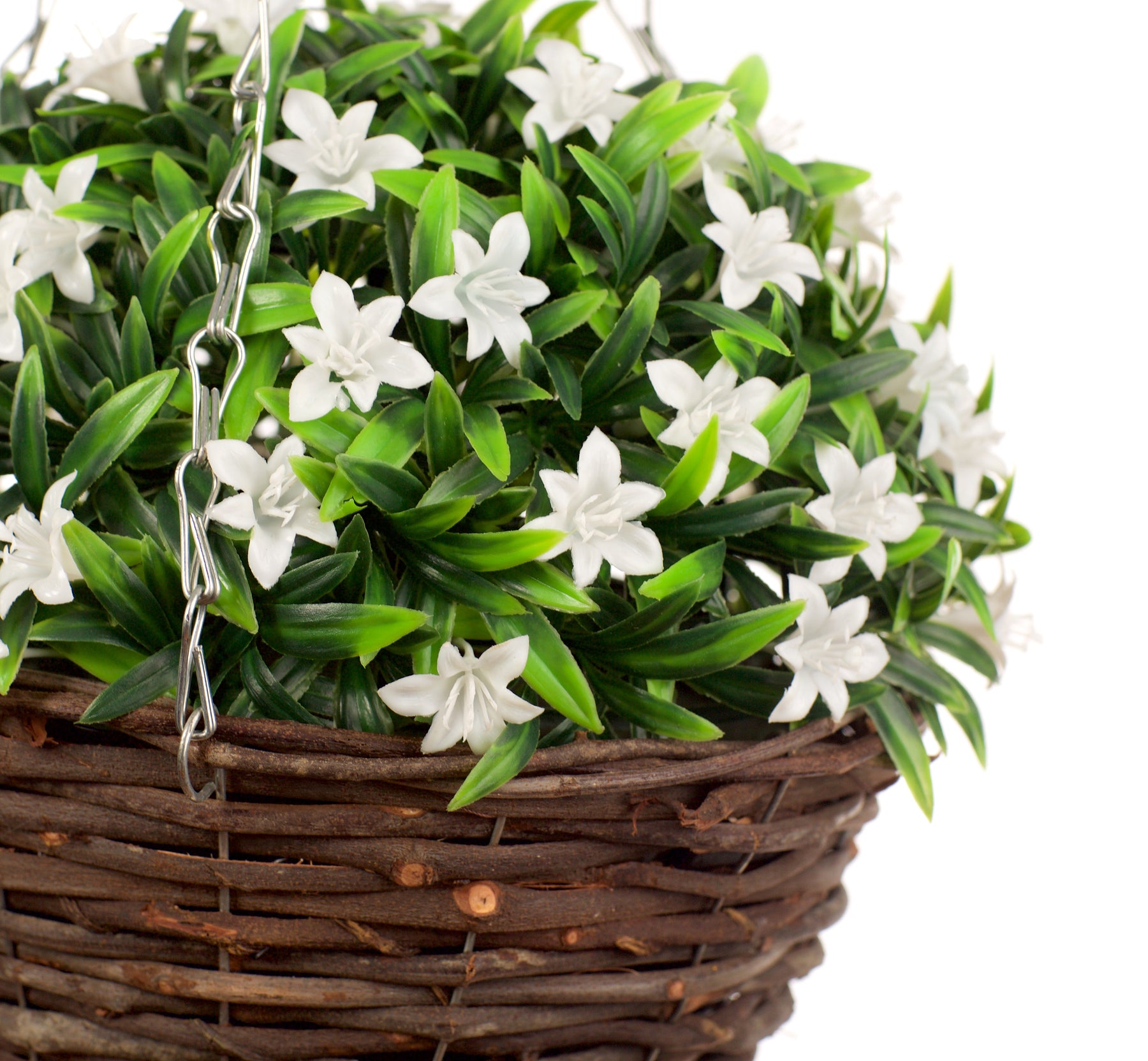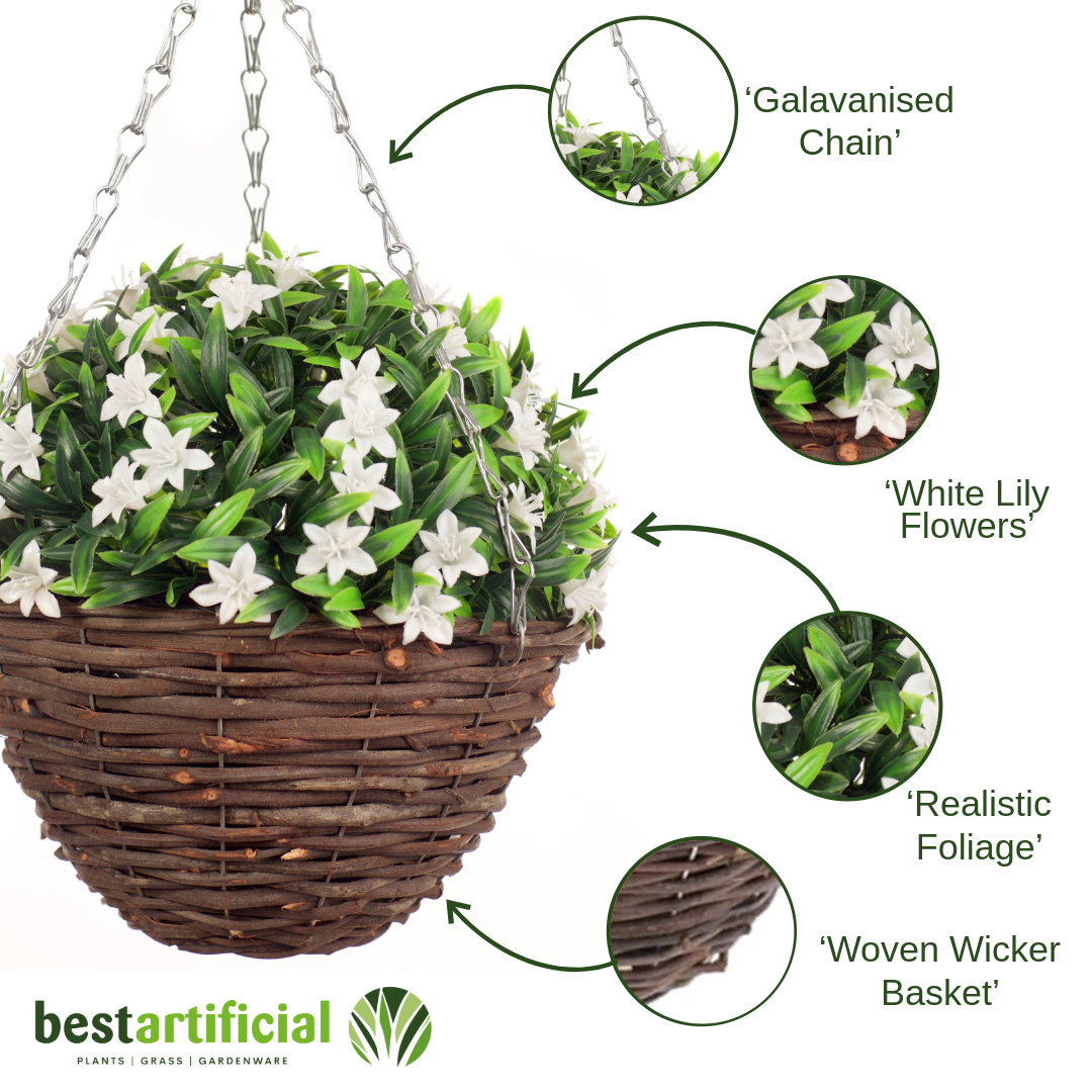 Best Artificial 28cm Lily Hanging Basket - Suitable for Outdoor Use - Weather Resistant (White)