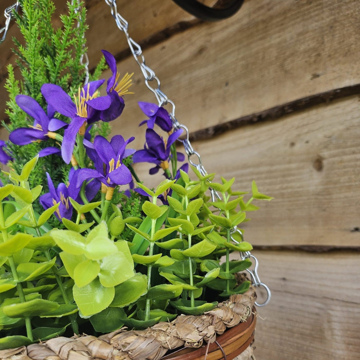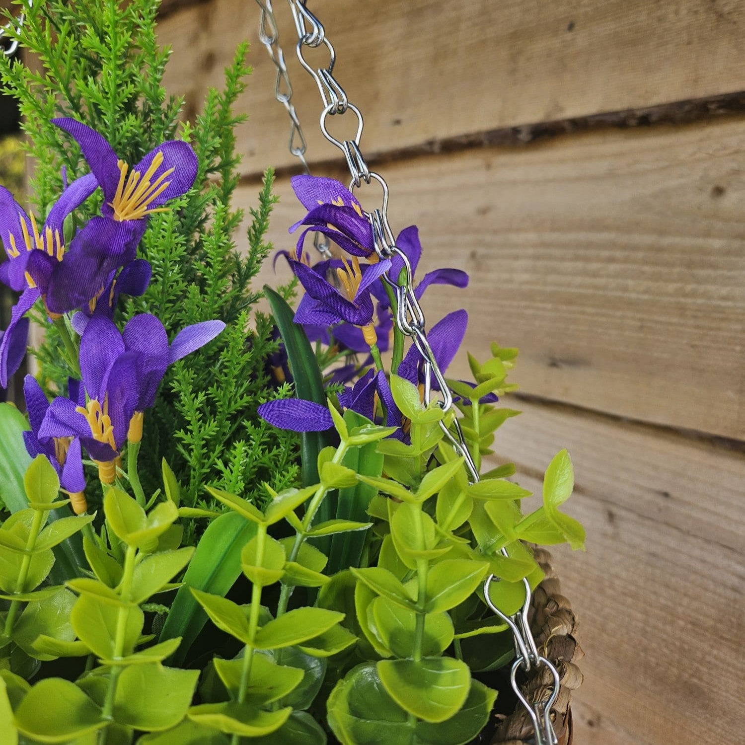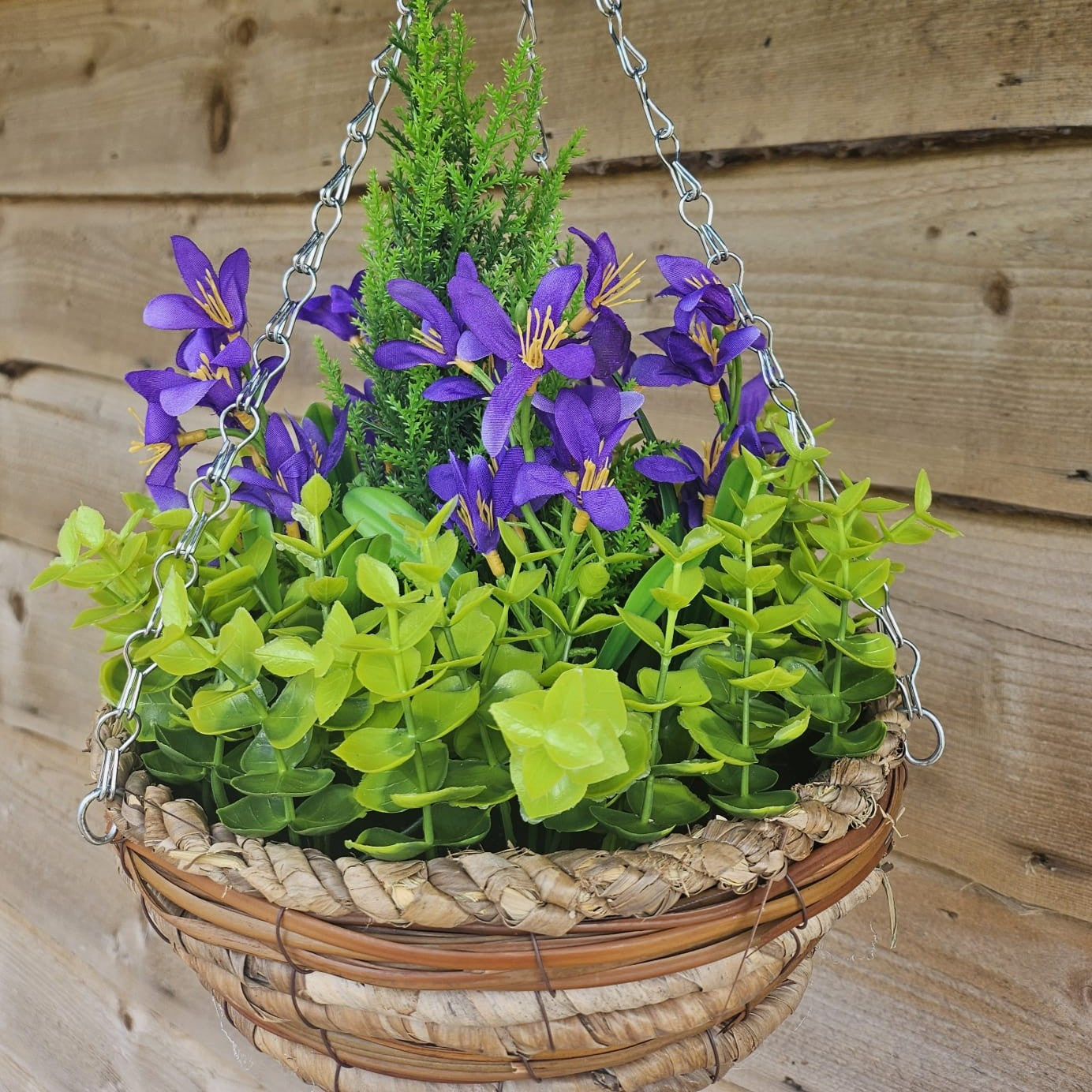 Best Artificial Purple Mini Daffodil Display in 10 inch Round Hanging Basket
