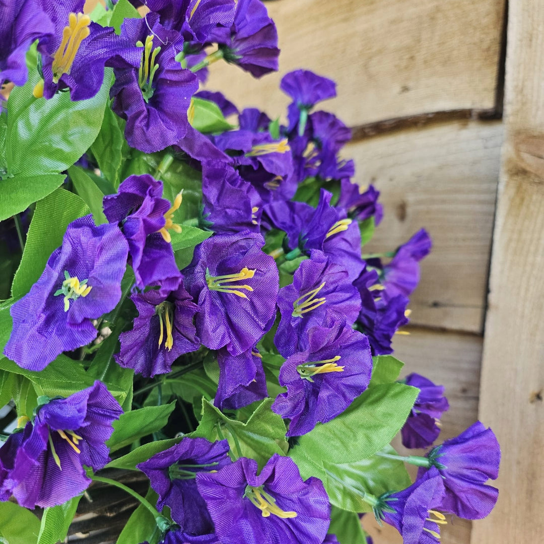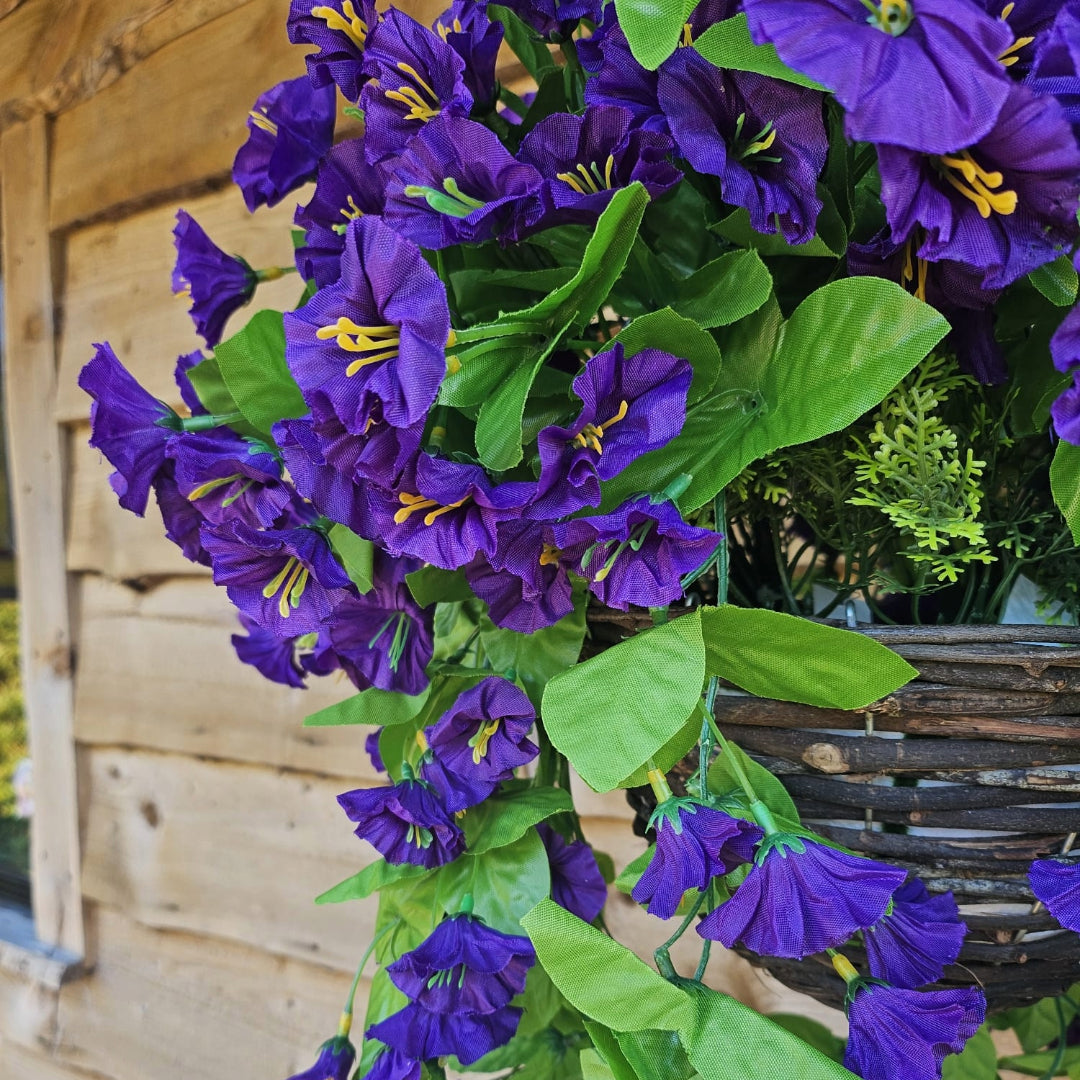 Introducing our Best Artificial 60cm Morning Glory Flower Display, perfect for outdoor, indoor, and garden use. This beautiful display comes in a 10" round wicker rattan basket, adding a touch of elegance to any space. Enjoy the beauty of vibrant purple morning glories all year round.
