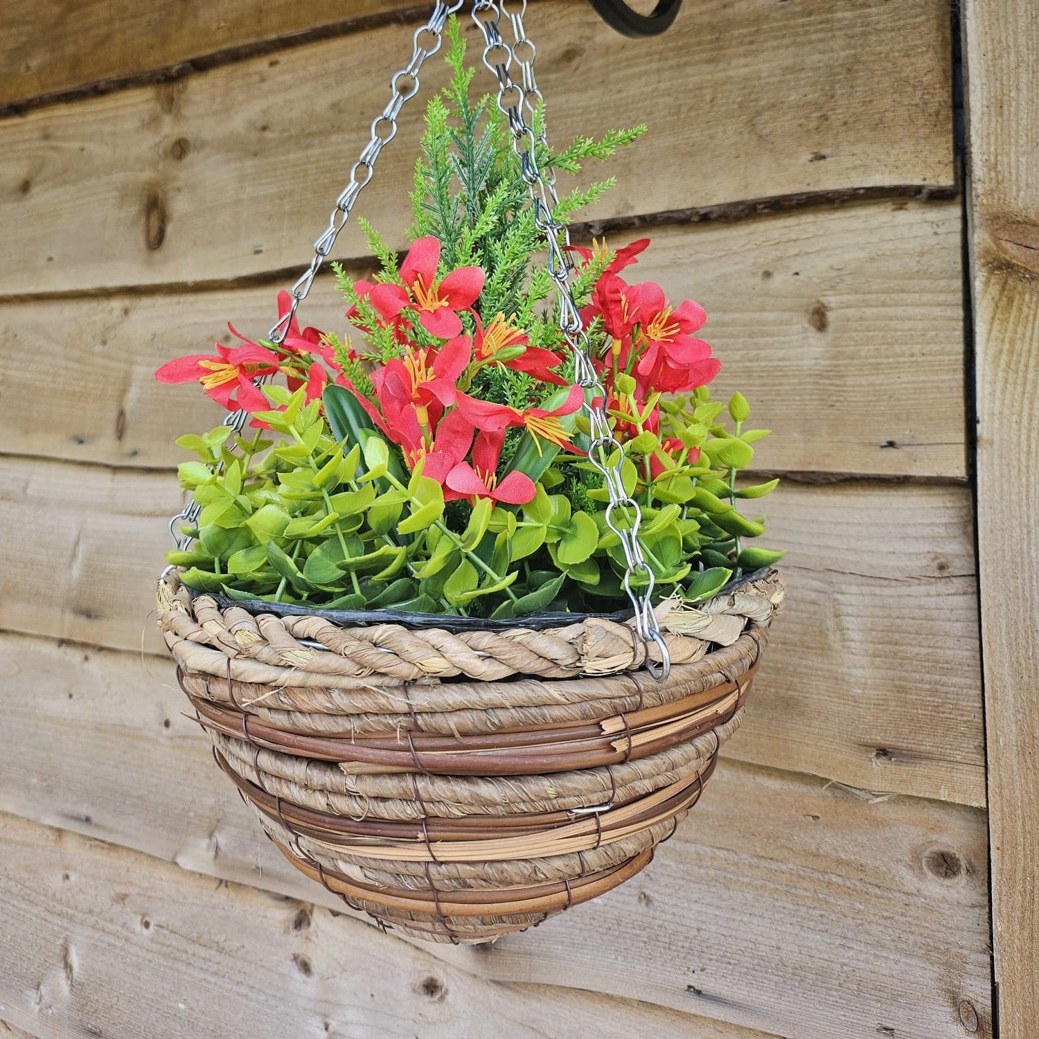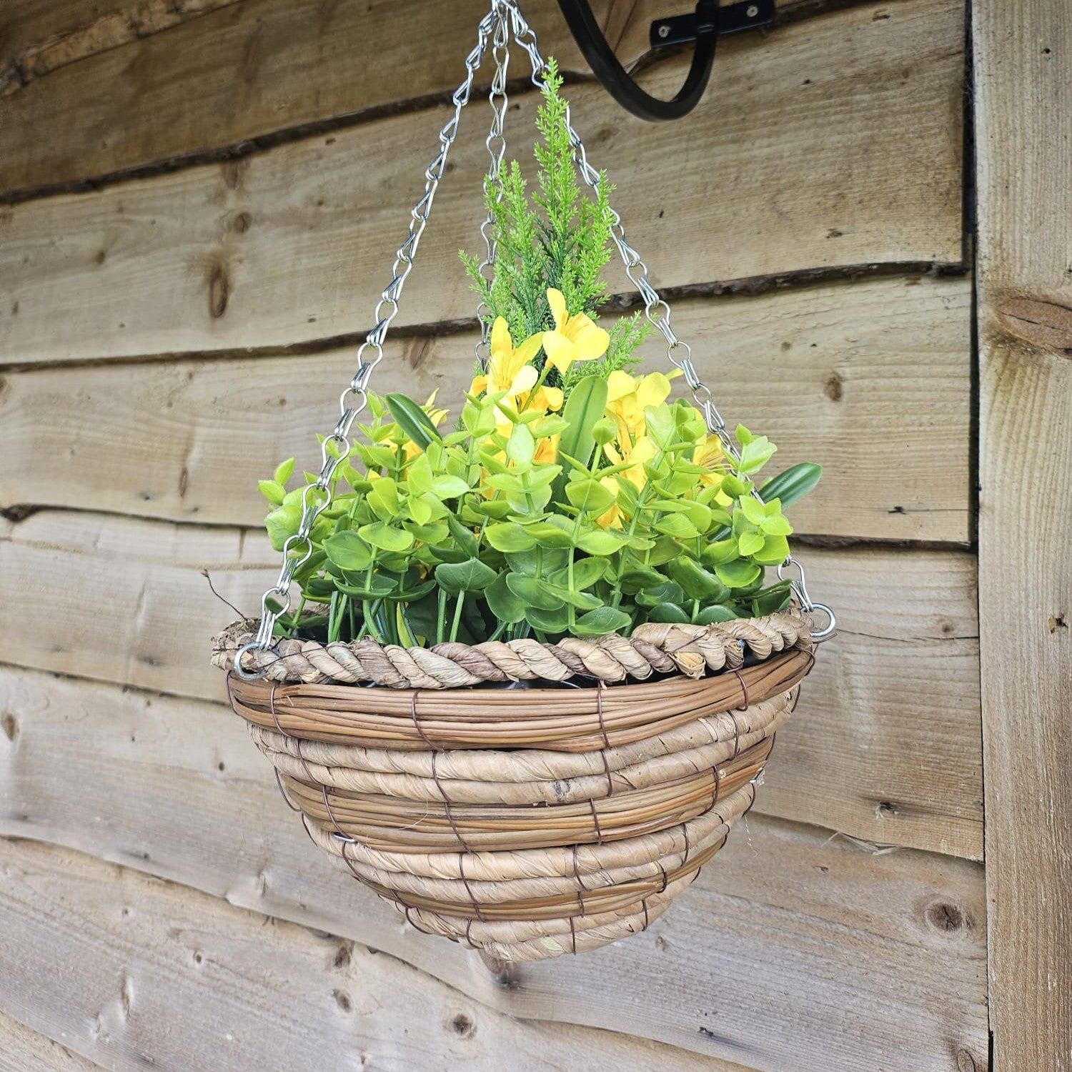 Best Artificial Mini Daffodil Display in 10 inch Woven Decorative Hanging Basket - Suitable for Outdoor use