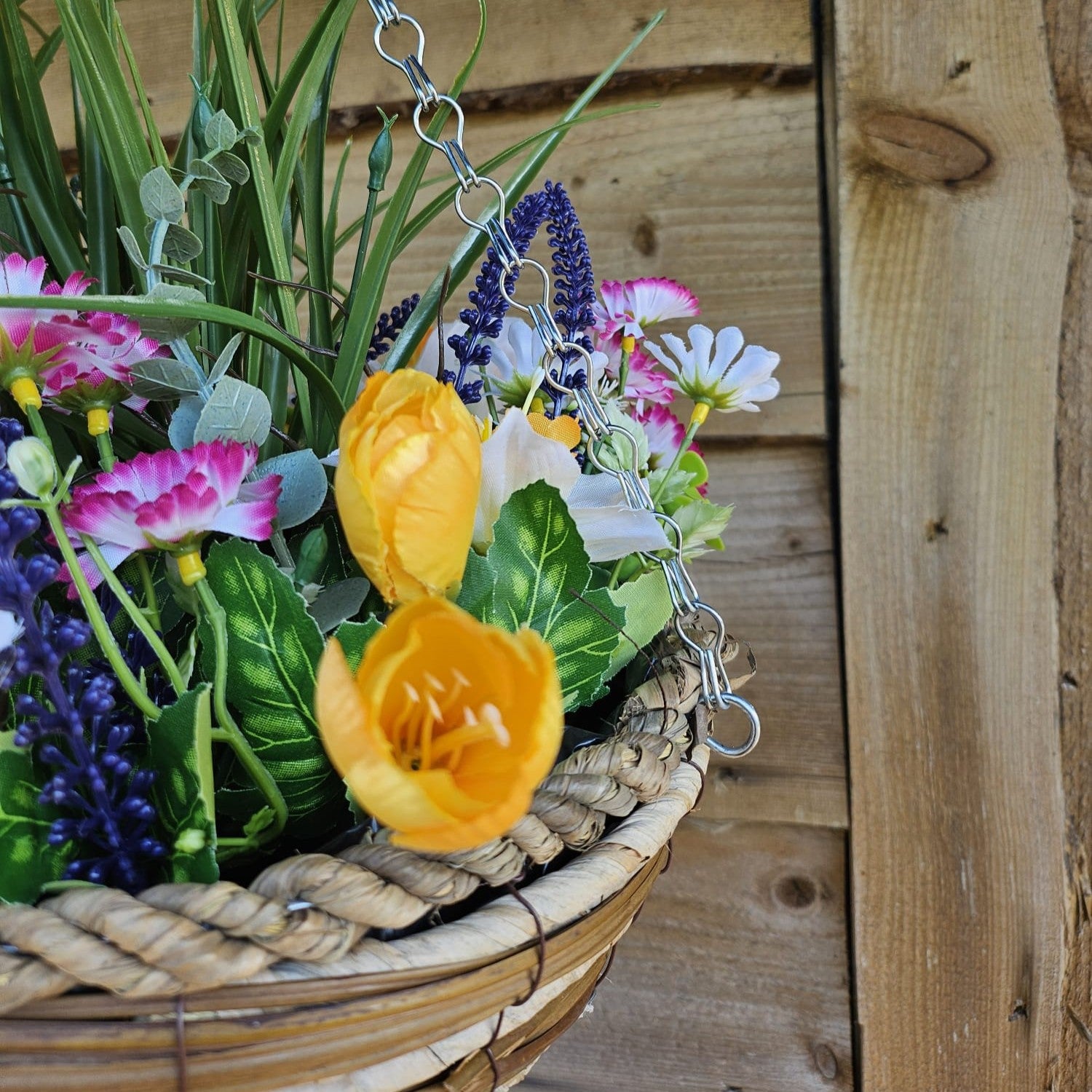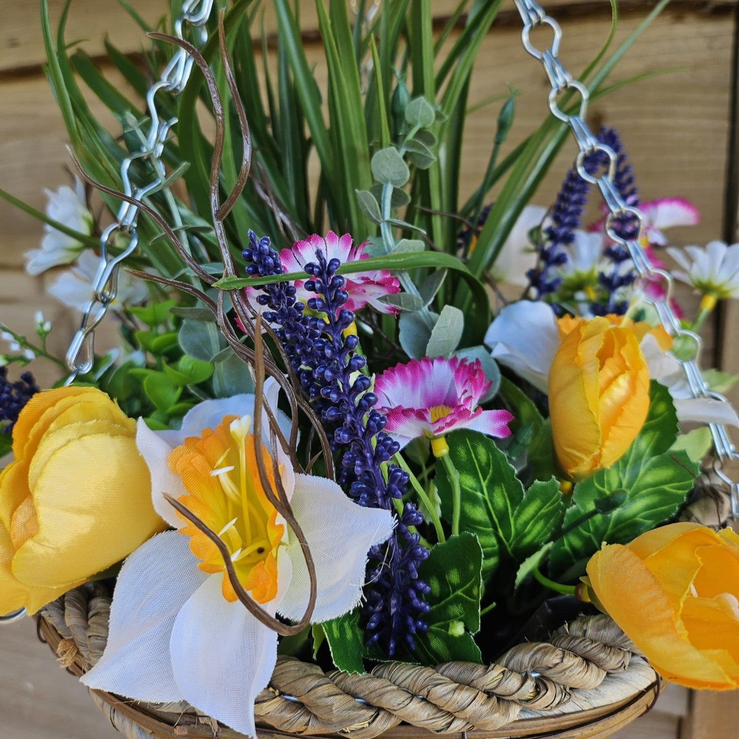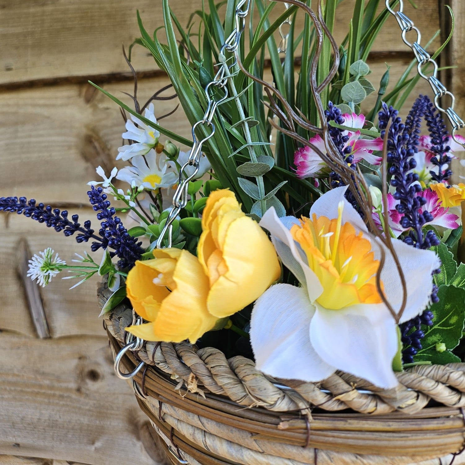 Effortlessly add a touch of natural beauty to your home or office with our Best Artificial White Mixed Meadow Flower Display. This display features lifelike flowers in a 10 inch woven decorative hanging basket, with a grass centre for added texture. No maintenance required, just enjoy the beauty it brings.