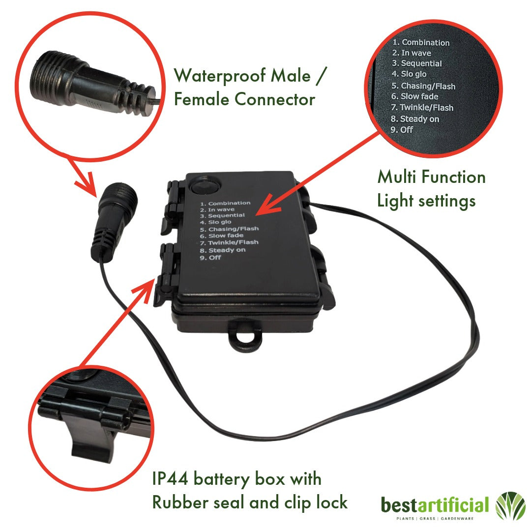 I had what looks like a manufacturing issue with one of the lighting runs in that some waterproofing was clearly missing. Once I got in touch with Best Artificial, they sent a replacement straight away. Great service!
