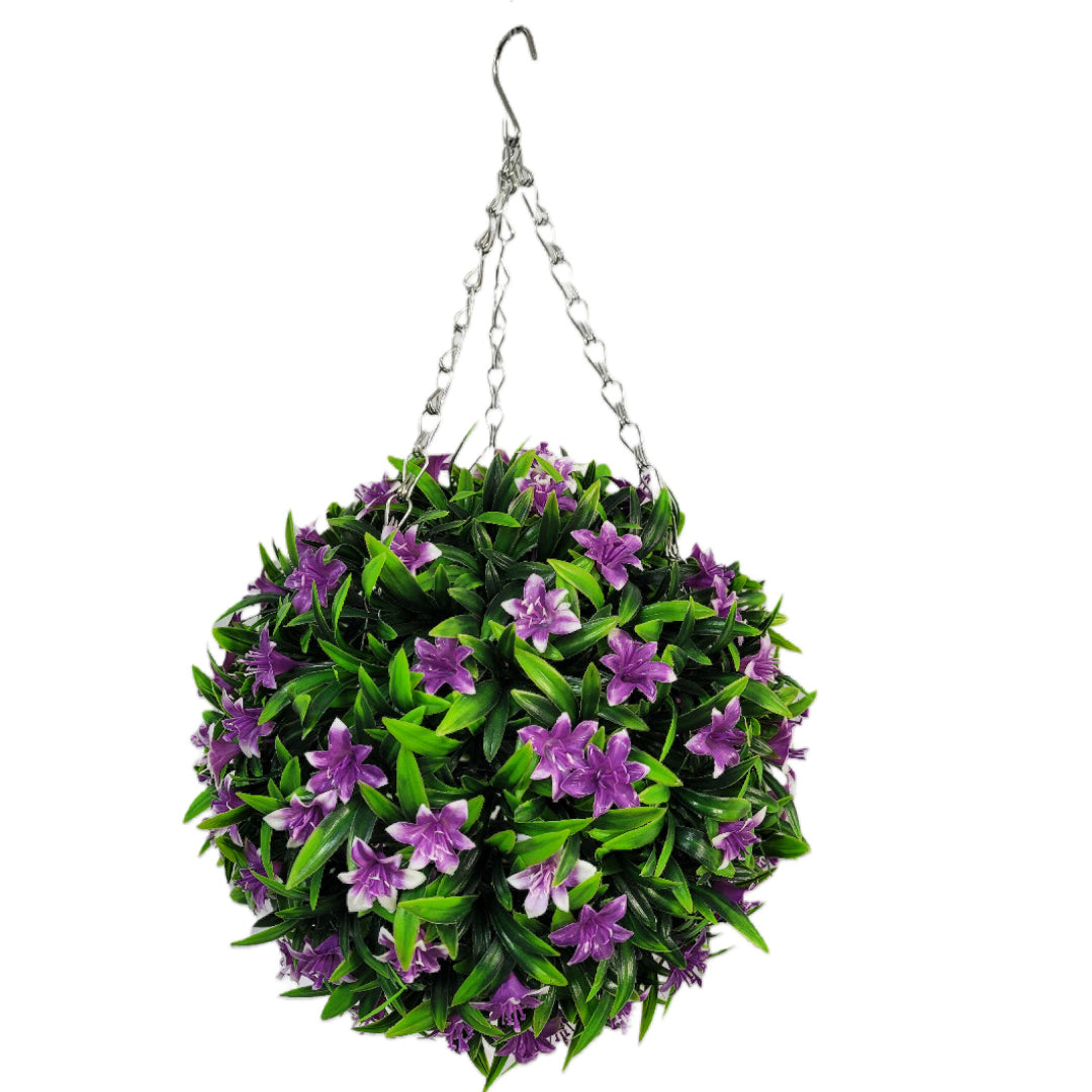 Our Purple Lily ball is the perfect way to add a burst of colour to your home or business. They accentuate any building and are maintenance free. They arrive fully assembled with a galvanised hanging chain attached to them so that they are ready for display straight from the box.