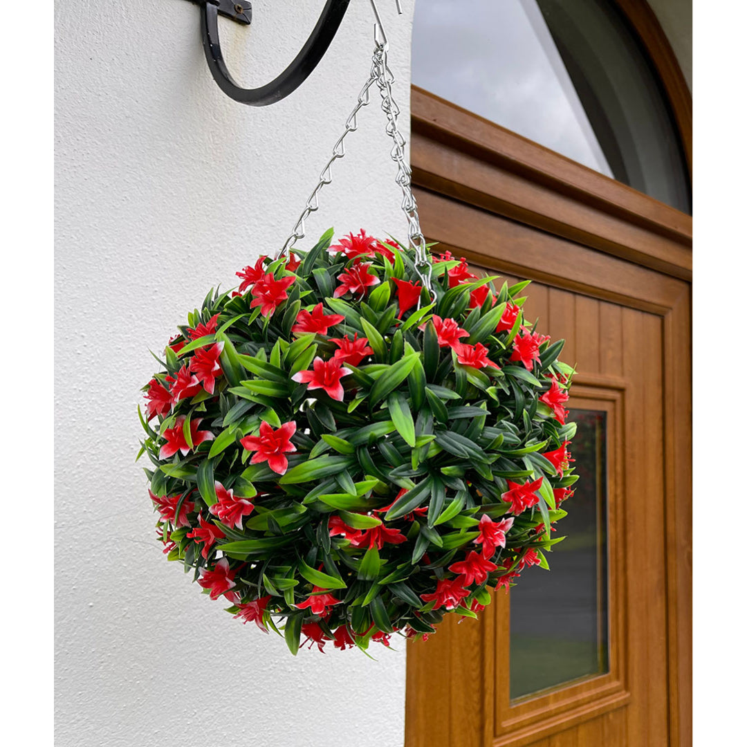 Our Red Lily ball is the perfect way to add a burst of colour to your home or business. They accentuate any building and are maintenance free. They arrive fully assembled with a galvanised hanging chain attached to them so that they are ready for display straight from the box.