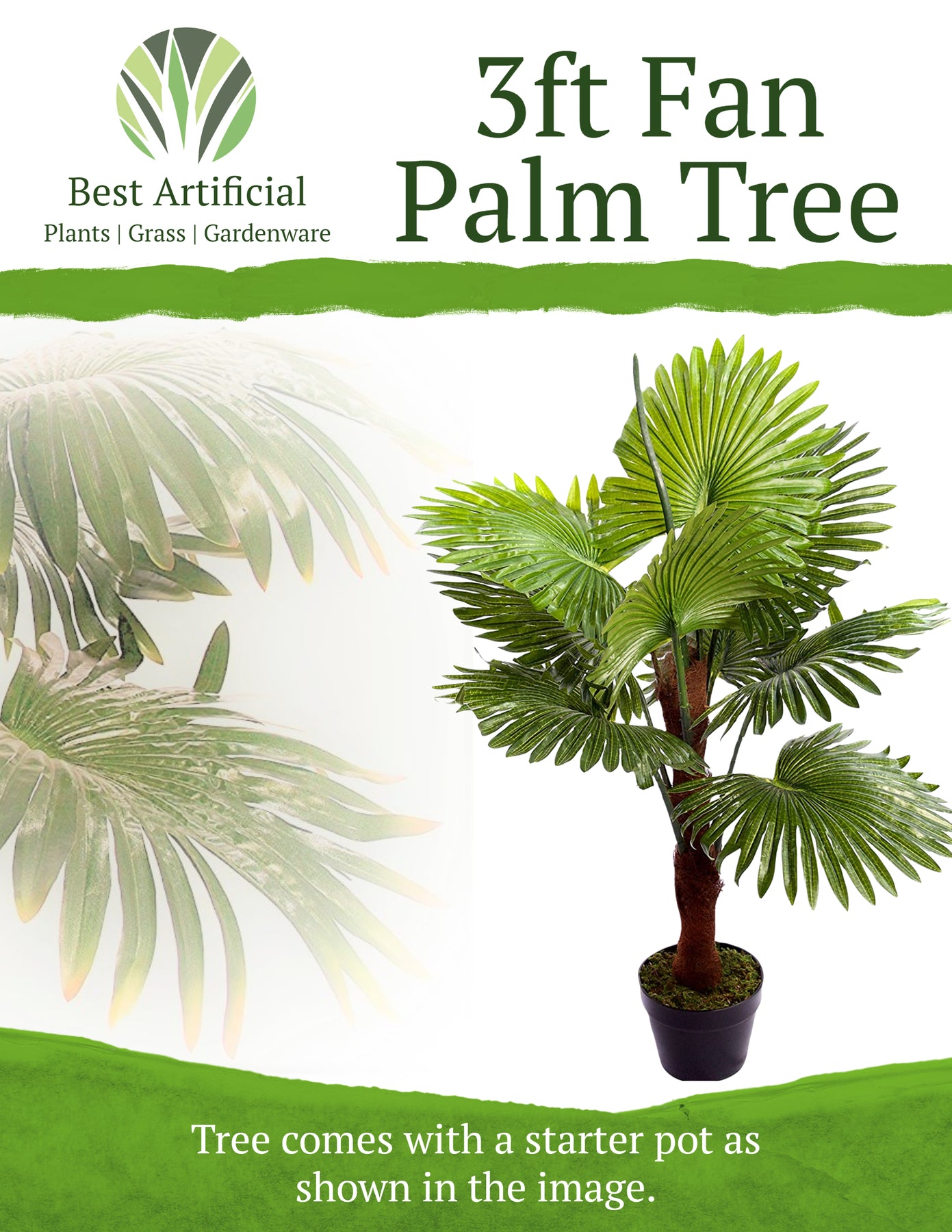 Best Artificial 3ft - 90cm Fan Palm Tree