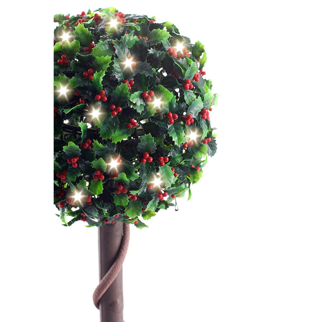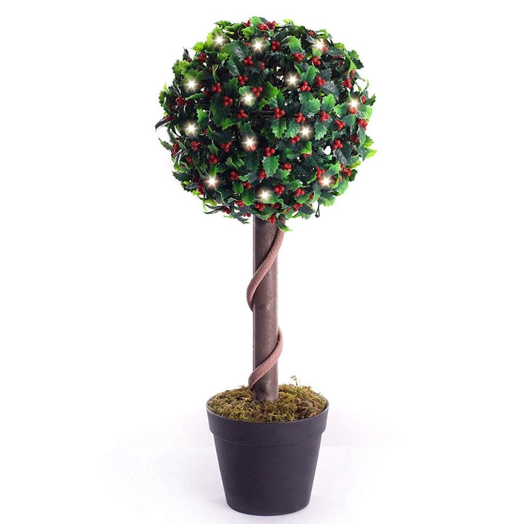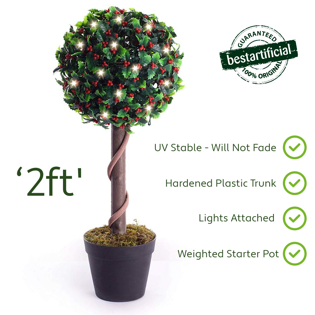 Best Artificial 2ft - 60cm Holly Ball Topiary Tree - Optional Lights