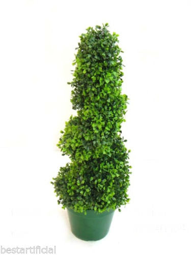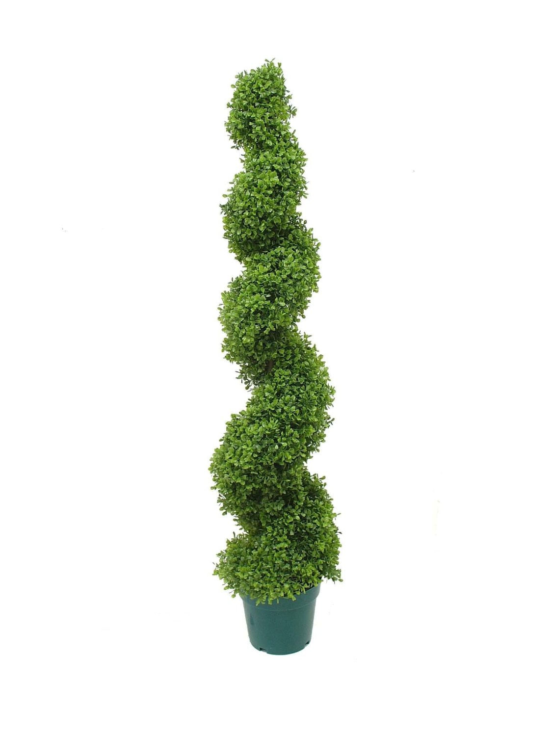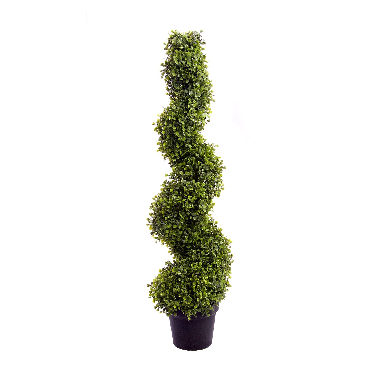 Our Boxwood Spiral Tree is made with top-quality materials and a sturdy metal frame, providing dense and lifelike leaf coverage. It's built to last outdoors with UV and weather resistance, just like all our products. This tree stands tall from pot to top and features a realistic, full appearance. Perfect for outdoor use, no maintenance needed. Picture one is exactly what you'll receive - please note the grey planters are not included.