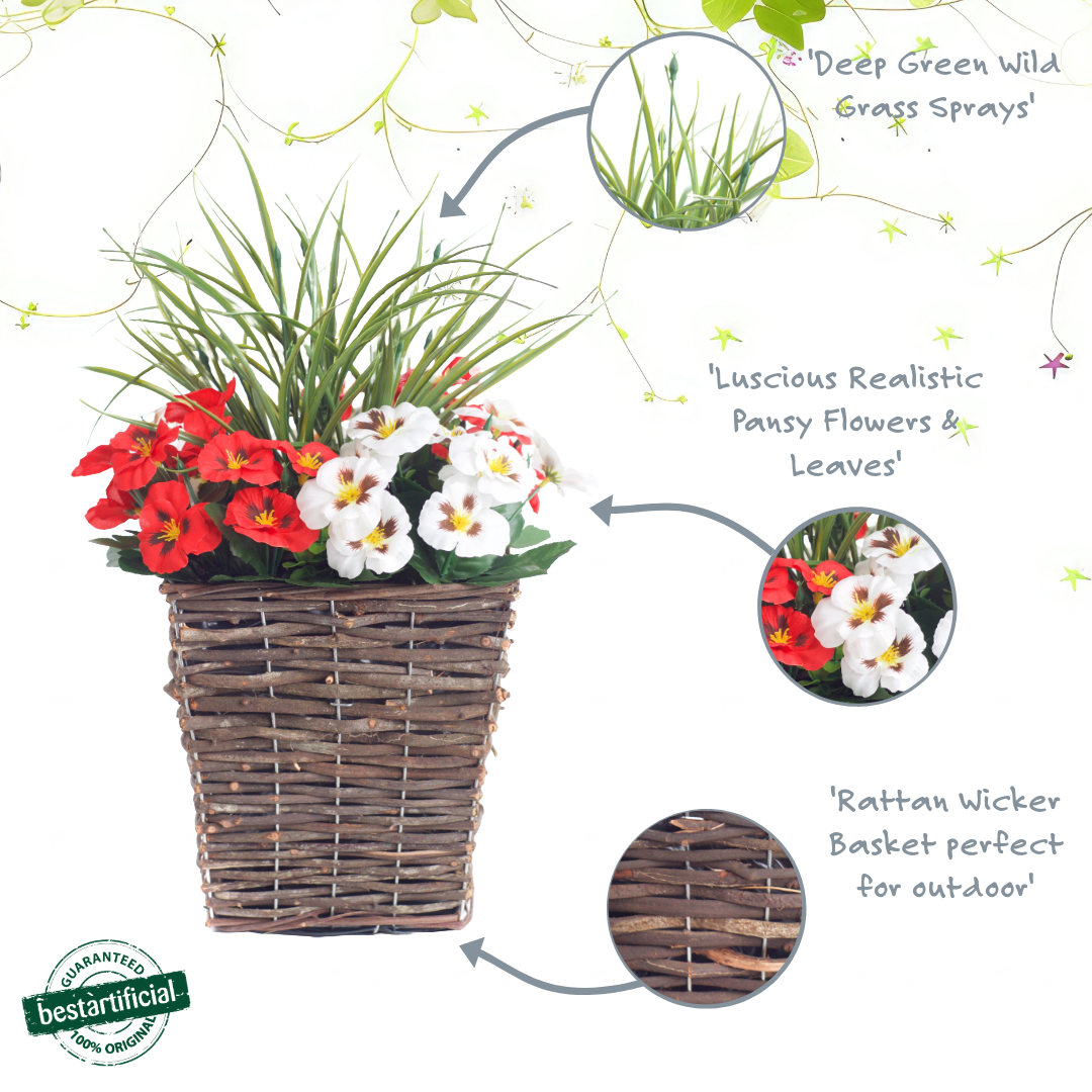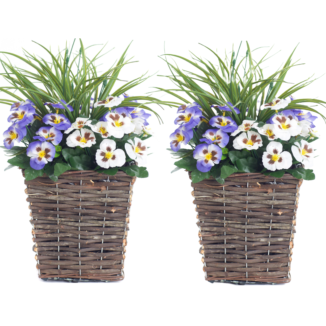 Pair Of 44cm Best Artificial Pansy Planters - Suitable for Indoor, Outdoor use.